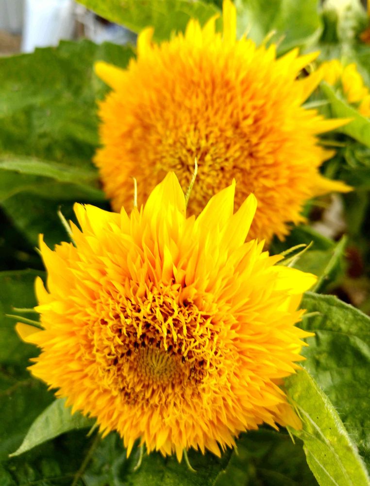 小さめの八重咲きのヒマワリが咲いていました🌻