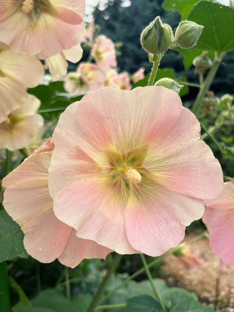 いつもの濃いピンク、薄いピンク、白、黄色とも違う色のタチアオイ。