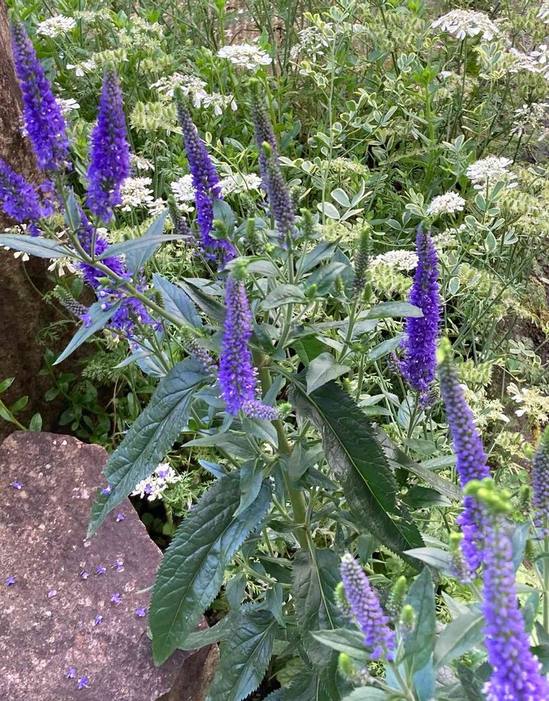 切り戻したベロニカマリエッタの二番花?とオルレアが玄関先で爽やかに咲いています