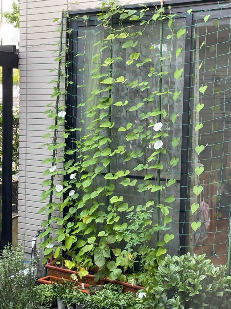 中庭のグリーンカーテンが中々上手く行きません。