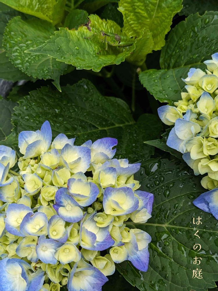 連日ぐずぐずしたお天気で植物が傷みますが紫陽花は別💙
