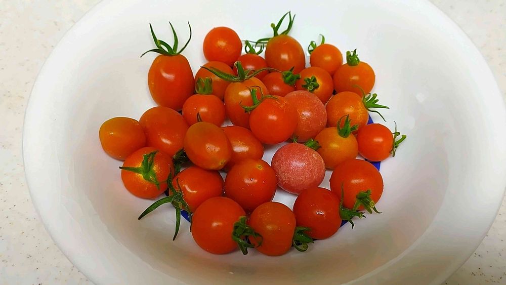 ミニトマト4日間我慢してこれだけ貯まりましたとの言葉が気に入りました😆🔴🔴🔴🔴🔴