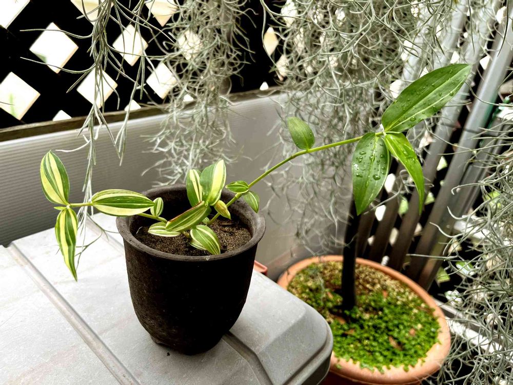 さん、話せば長くなりますが30年ほど前に斑入り植物の展示会で買ったものですが、いつの間にかいなくなって家の敷地に自然に生えるように…ここ10年以上は見てなかったけど先月見つけたので鉢上げしました笑笑😁