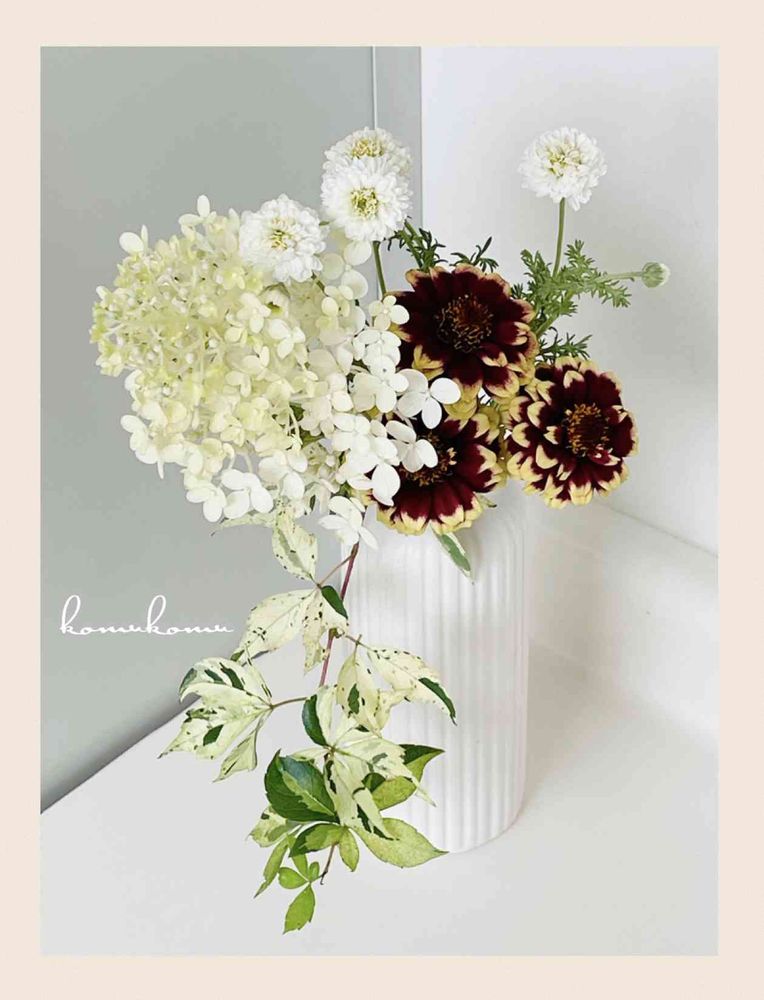 大人なジニアに斑入の🌿