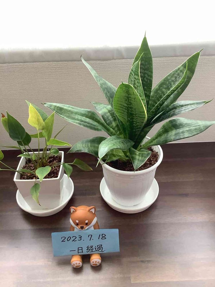 昨日“木から生まれた土”を使って植え替えたアンスリウムとサンセベリアです。