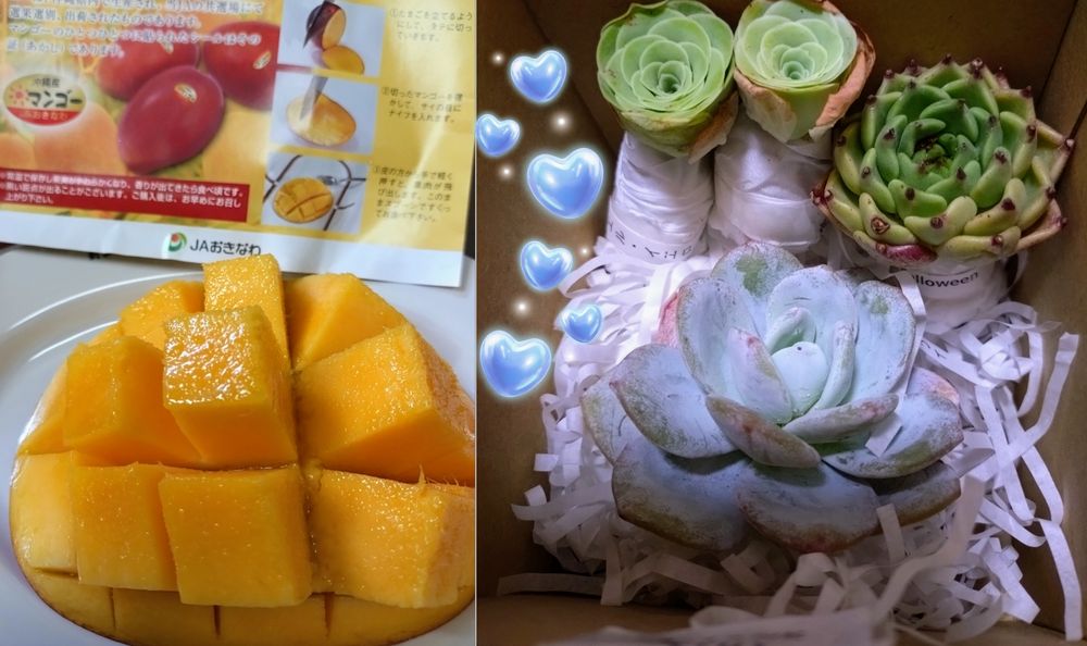 写真左は連休中に買ったマンゴー🥭