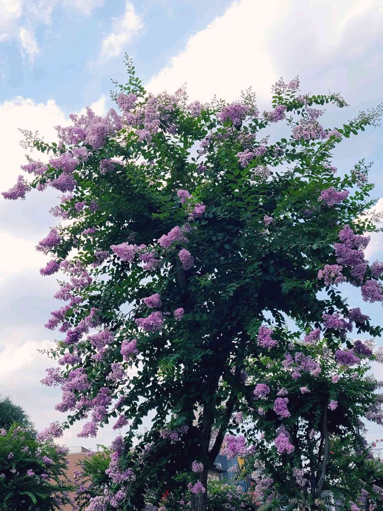 日中の猛暑日の外出は老女には💫😵🌀🚶♀️ふらふらです😊街路樹のサルスベリが綺麗でしたよ😃