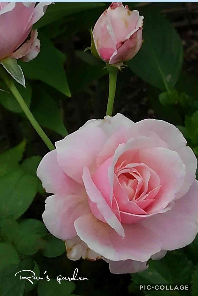 薔薇🌹ピエ・ドゥー🌸優しい色で形も良かねー バックの蕾とのコラボが綺麗、まだ楽しめるね👍(*^ω^*)
