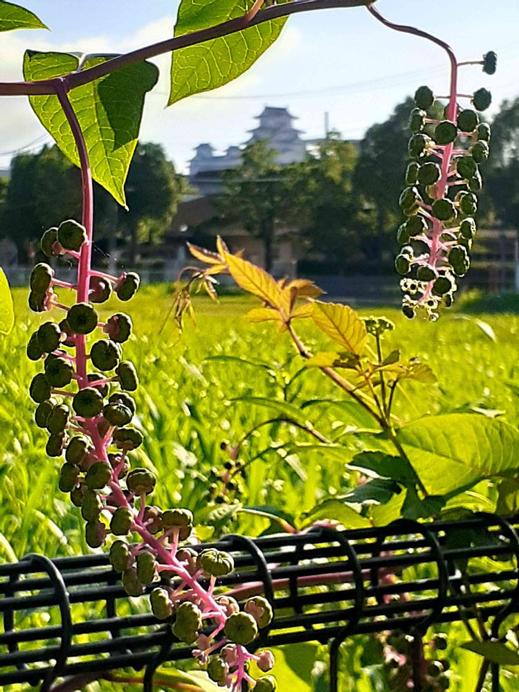 ヨウシュヤマゴボウの茎がいい感じにフレームになってお城を囲んでますね💕