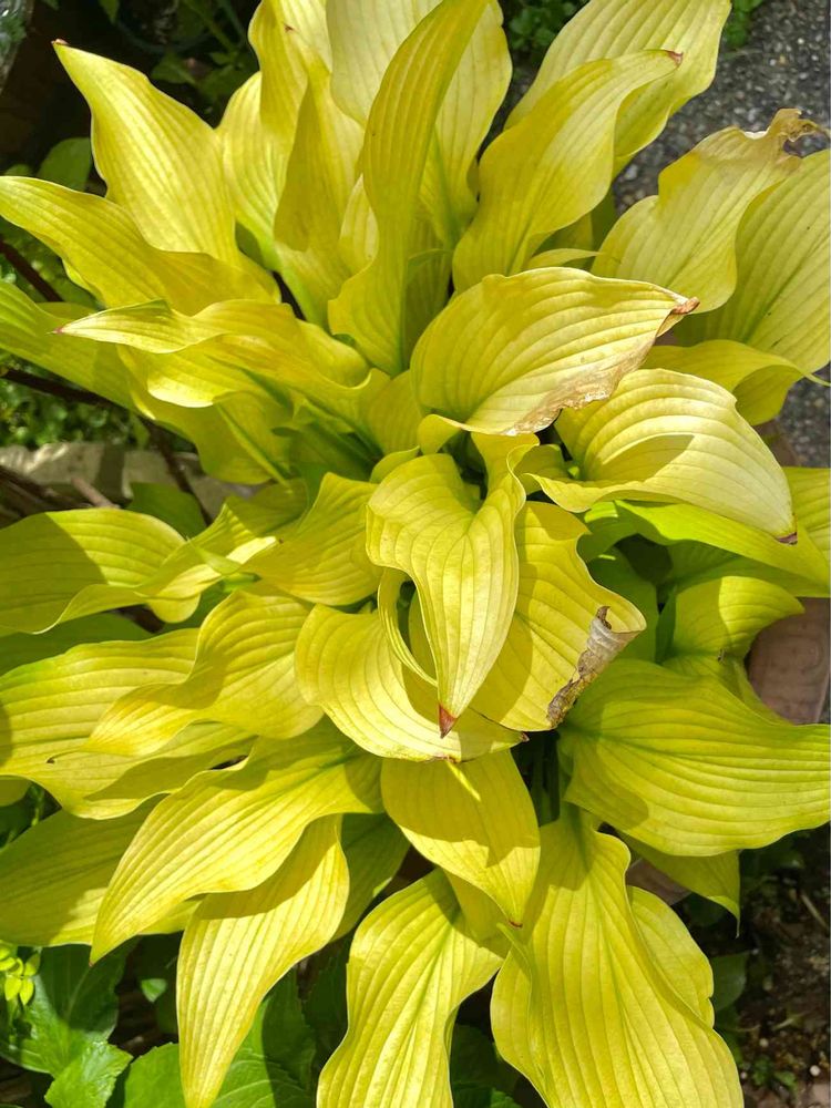 ホスタ・サンパワー🌱もうこの先、日除けになる場所が無いので、焦げるばっかりだわ💦太陽が割と好きなコみたいだけど…それでも、もうキツいよね(๑꒪▿꒪)ゴ、ゴメンネ…💧
