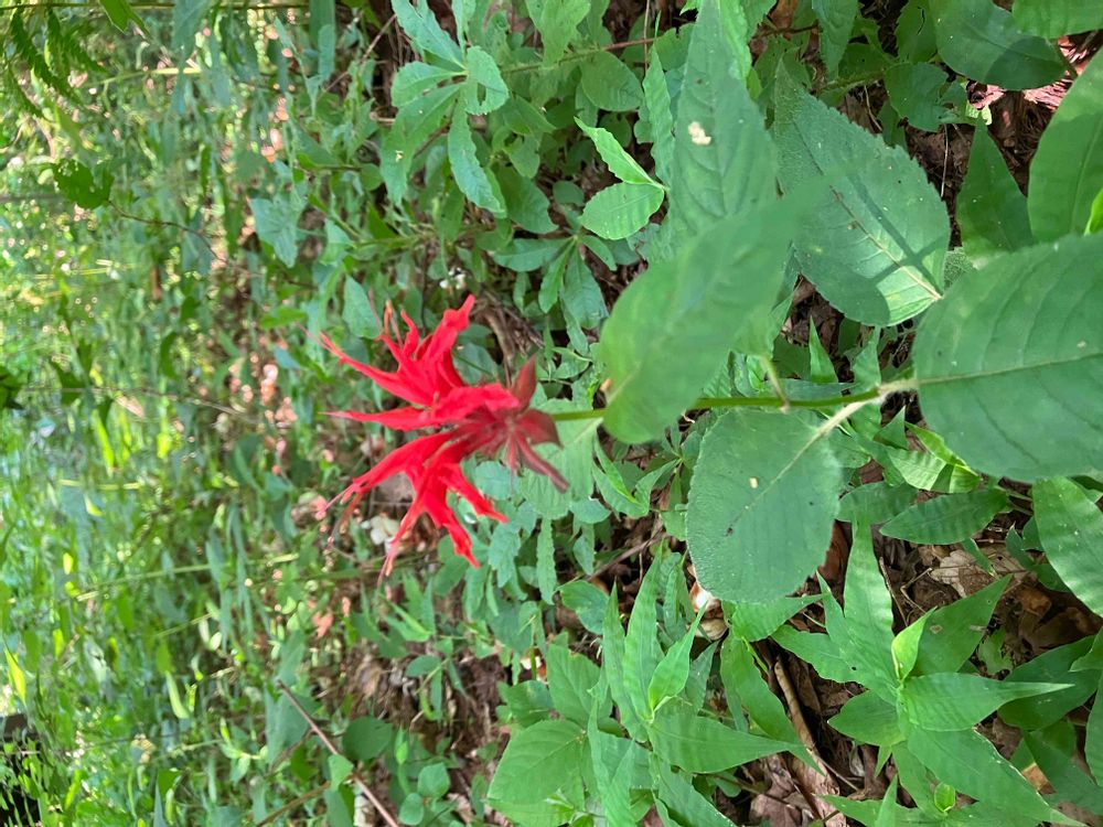 山歩きしていて見つけました。赤い花が可愛かったです。モナルダが一番近そうです。