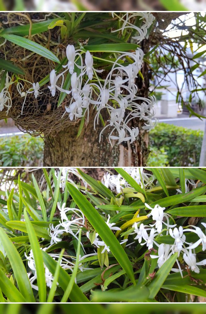 ひとつの🌳に向う側とこちら側に 各々の蘭が~😀💕