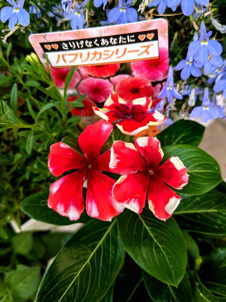 凄く鮮やかなビンカさん❤️北島園芸さんも個性的なお花出しますよね🌼置き場所まだあるなんて凄い(*≧艸≦)