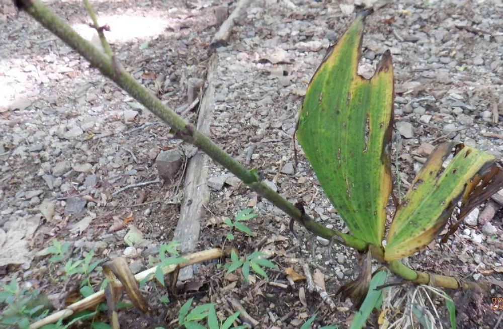 下の葉2枚だけかろうじて残っていますが、そこから上の葉は見事にありません。