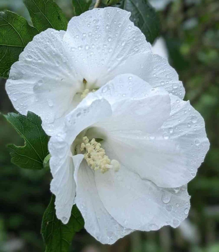 白いムクゲ…雨に濡れた姿も、素敵ですね!✨✨✨