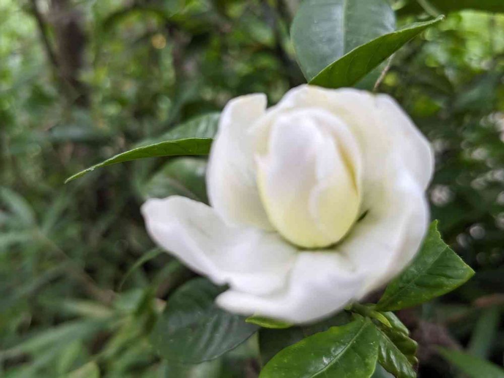 ふっくらと咲いた梔子も