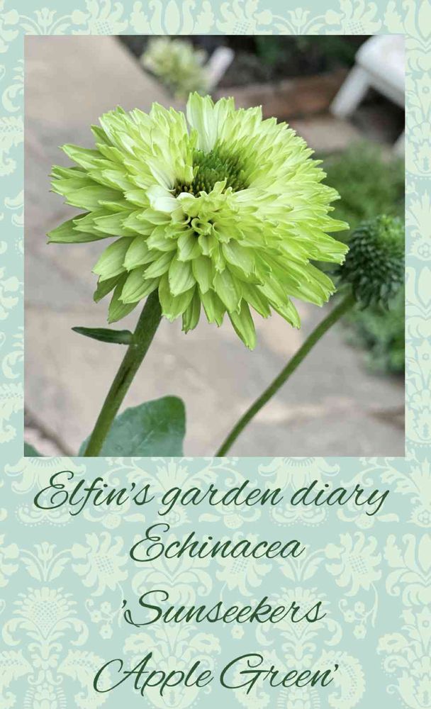 サンシーク アップルグリーン。日曜日にJHに行った際にお連れしたエキナセアです。爽やかなグリーンの八重が目を惹きました。
