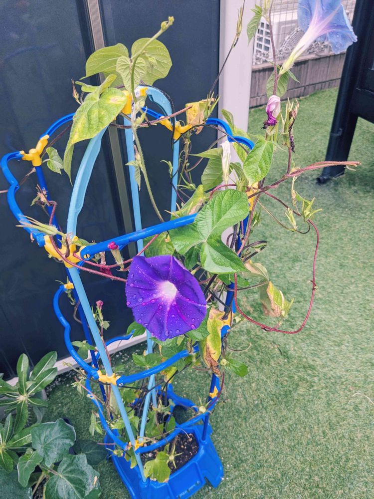 昨日 小学校から持ち帰ったチビさんの朝顔♪