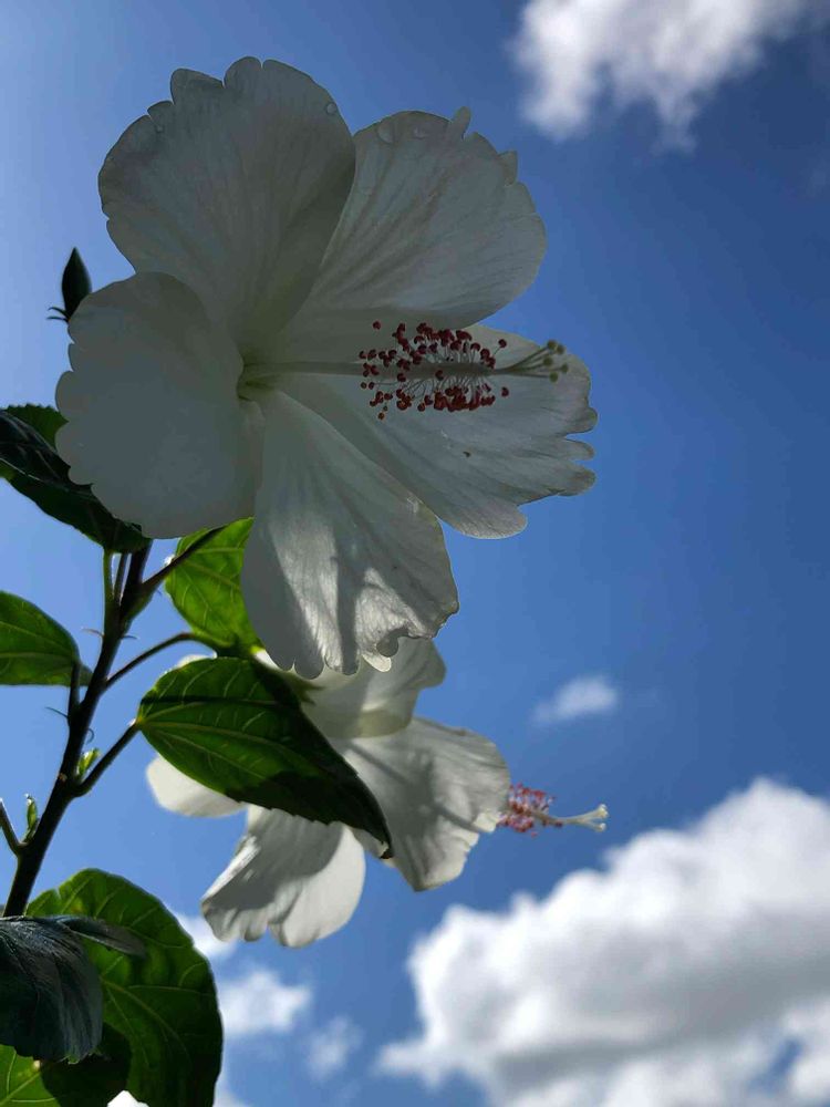 真っ白のハイビスカスはやっぱり青空が似合うね〜🤍🤍