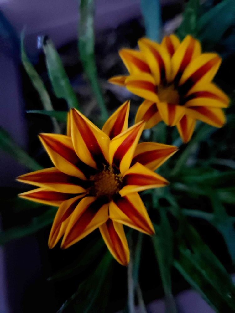 昨夜2輪のガザニアが咲いているのを発見‼️連日の猛暑に外出を控えていたその間に開花したみたいです。