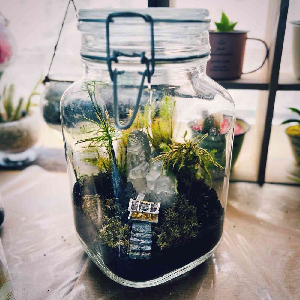 少し前になりますが、ボトルアクアリウムのお引越しで一番大きなボトルが空いたので、一回り小さいサイズだった苔テラリウムをお引越しさせました。