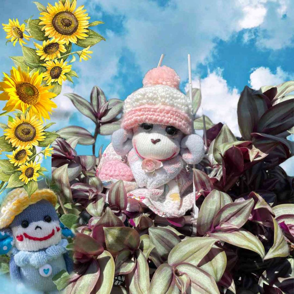 多肉に載せたかったのですが…ソクモンちゃんが大き過ぎて吊り下げにお座りさせました🤗💕