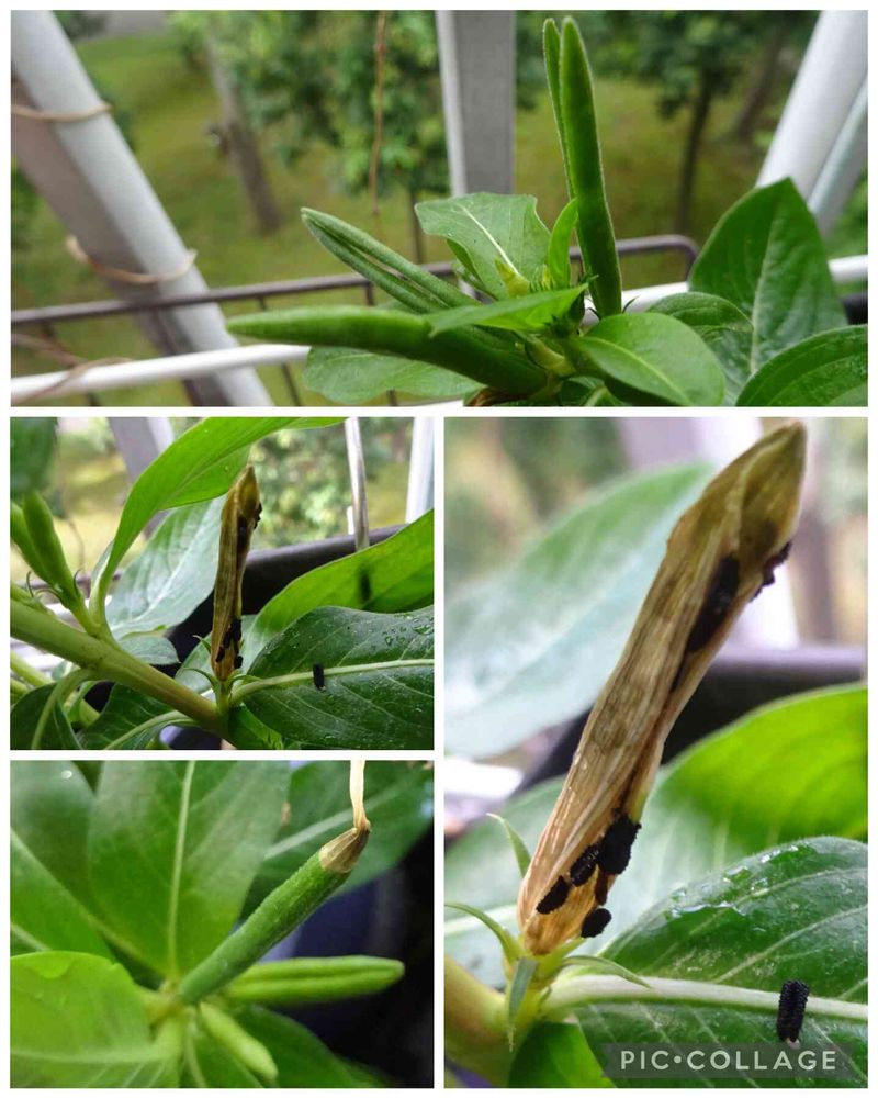 今、ニチニチソウの実ってどんなのだろ?と思っていたところよ!