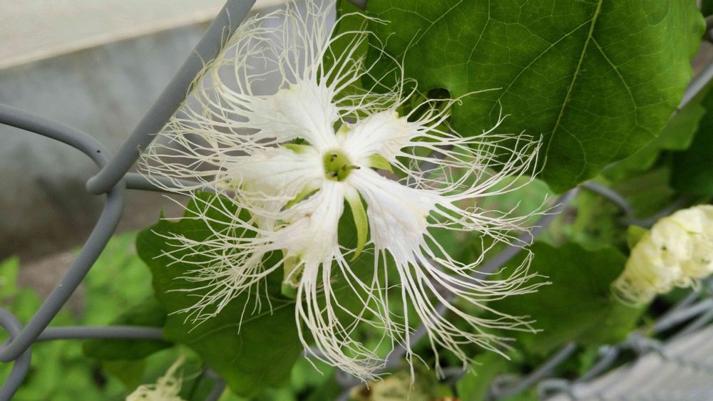 カラスウリの花、見つけると嬉しいですね💕秋になったら赤い実を見に来ようと思ってて、いつも忘れる😅✨