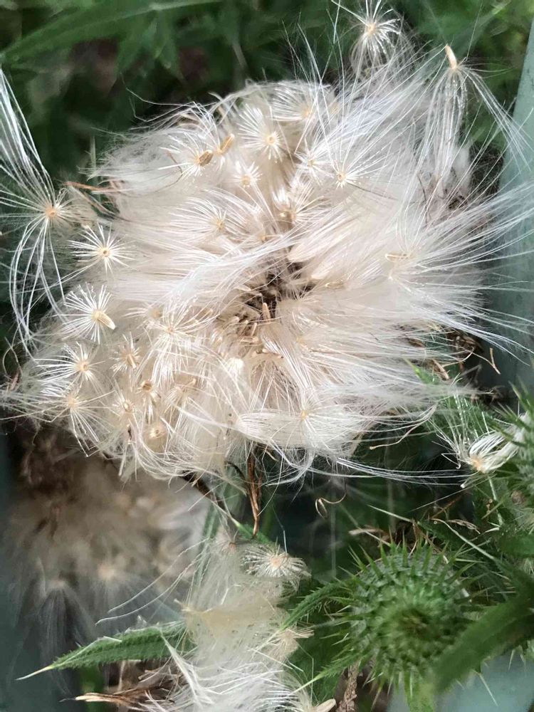 ノアザミの花後の綿毛、ふわふわで、ケサランパサランのようです。