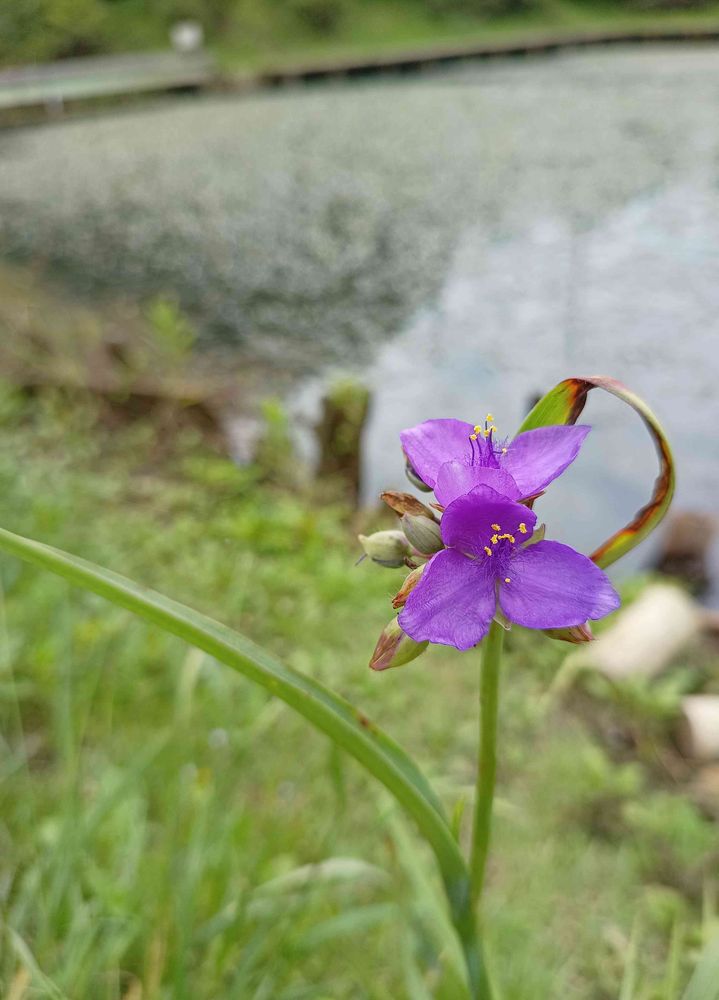 ムラサキツユクサ、水辺で撮ると🤳🏻ちょっとステキになりました。