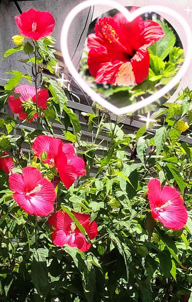似てる〜ハイビスカス🌺の花言葉は(内気な乙女)だそうで~(笑)