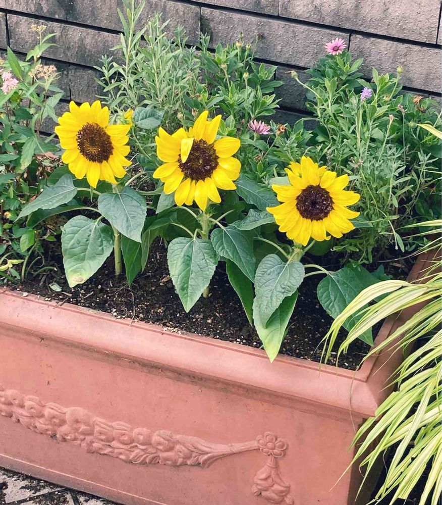 ひまわり三兄弟ですね。かわいい🌻