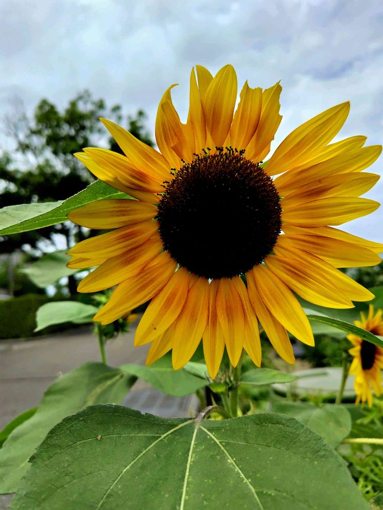 花びらに模様のある 明るい色のヒマワリが咲いていました🌻