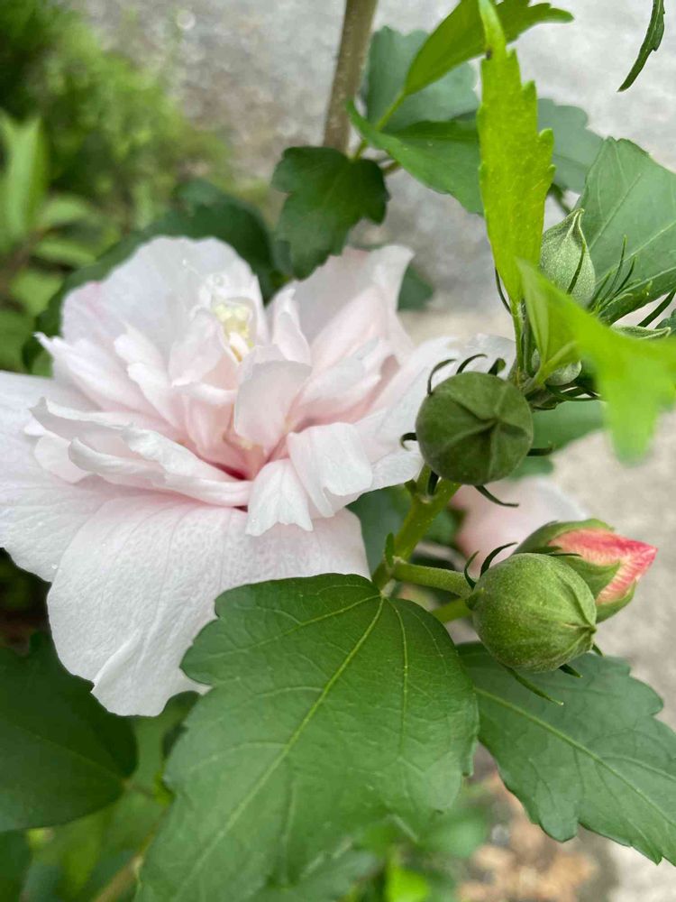 地植え,ムクゲ八重,今朝の庭。の投稿画像
