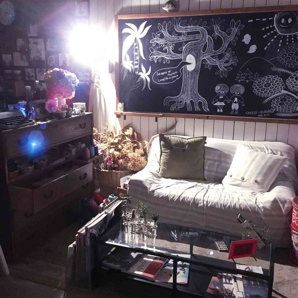 照明の感じとか、所々にある植物、お友達が書いてくれた素敵な作品に囲まれてお部屋全体が素敵(*≧∀≦*)❤️