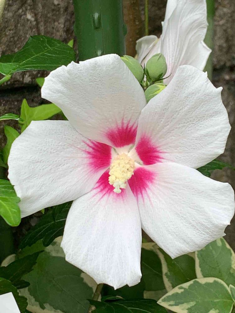 (ノ*ˇ∀ˇ)ノおぉ♪珍しく白いムクゲさん🤍美人さんですね🤍🌺