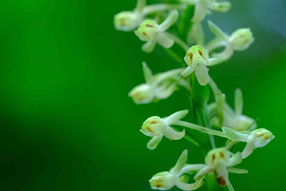 「唇弁が細長く、細長い距が水平から下向きにつくのが特徴です。」って