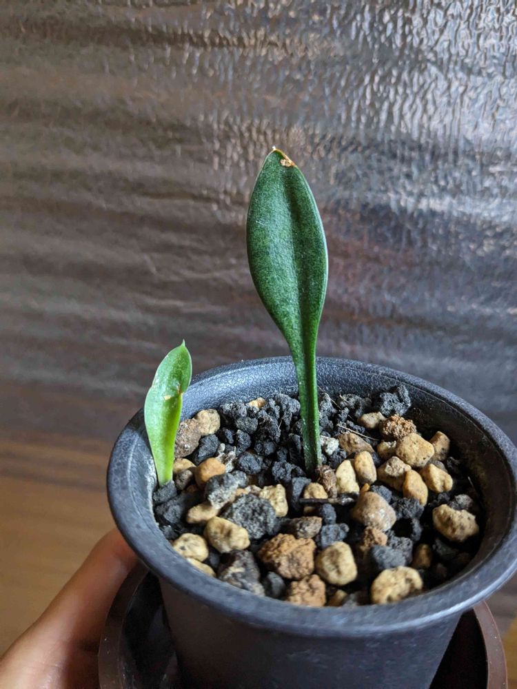 数年前に沖縄の草友さんに頂いたサンセベリアの何かの🌿を挿して置いたのが急に動き出した。🌿が2枚に😳