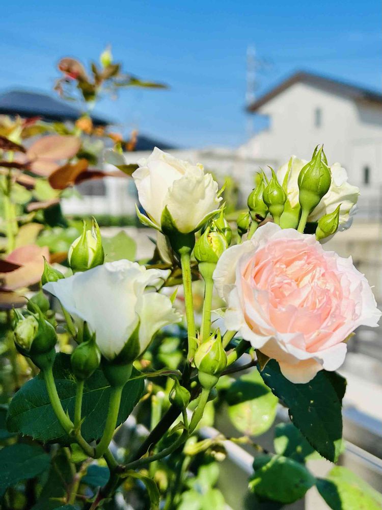 Sanさんのお庭、暑い中、薔薇が美しく咲いてますね。我が家は暑すぎて、薔薇が焦げてます😭暑すぎてダメですね〜。