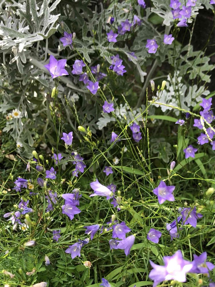 日陰・半日陰OKの宿根草のカンパニュラロツンデフォリアブルーが、爽やかに涼しげに咲いてます。