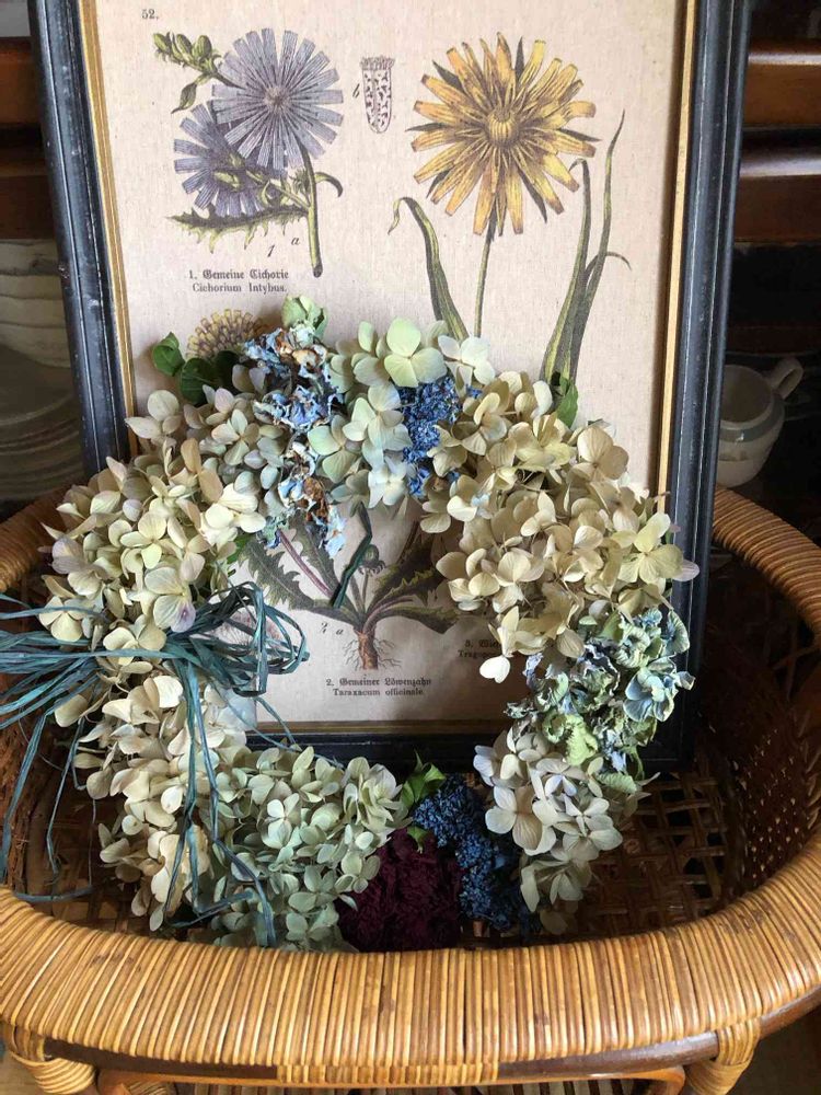 紫陽花のドライが沢山できたので早速作りました🩷ボタニカルアートと!