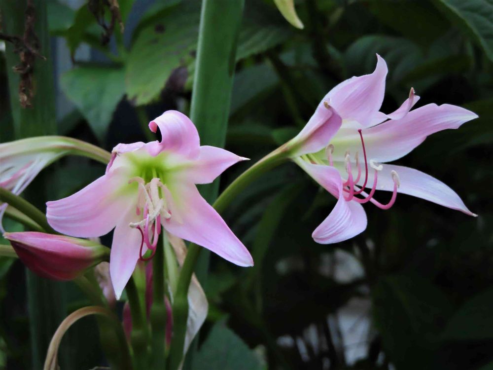 ピンクの綺麗なお花が咲いていました。「アマクリナム」のようです。 パチリ