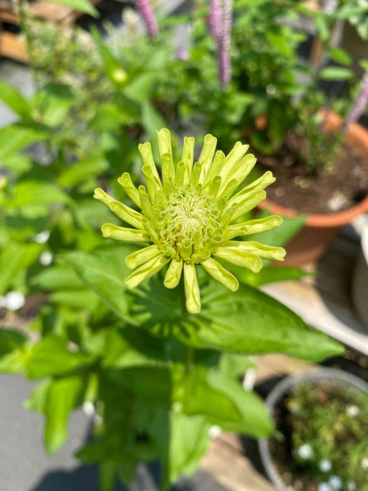 gdnaさんのジニアクイーンライム,鉢植え,開花の投稿画像