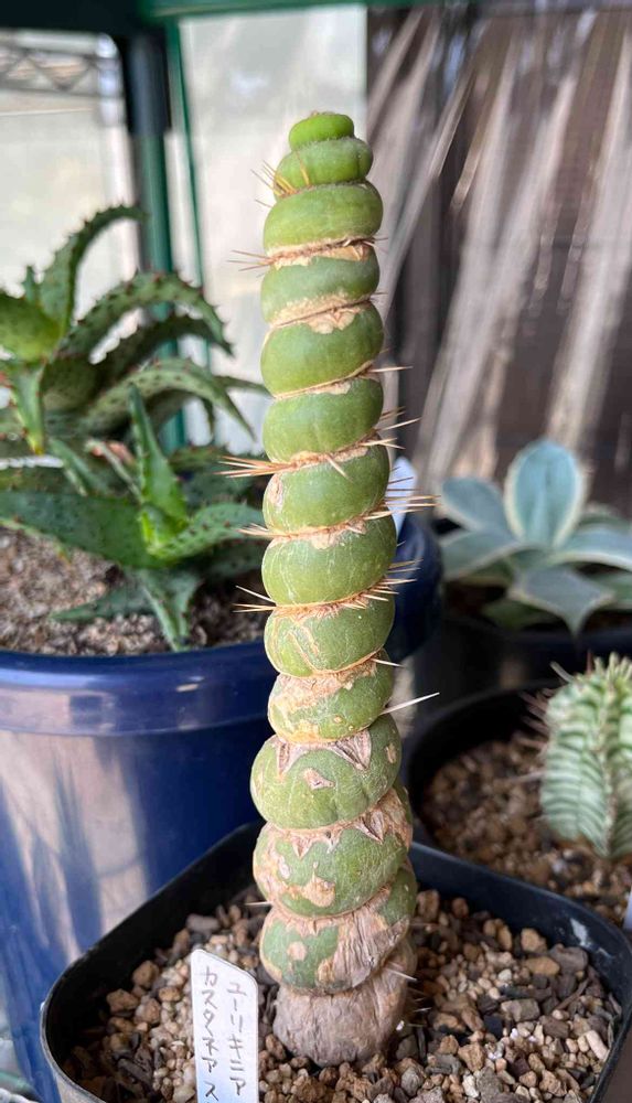 🌵ユーリキニア・カスタネアは大型の柱サボテンで スピラリスはそれの突然変異種だそうです☺️