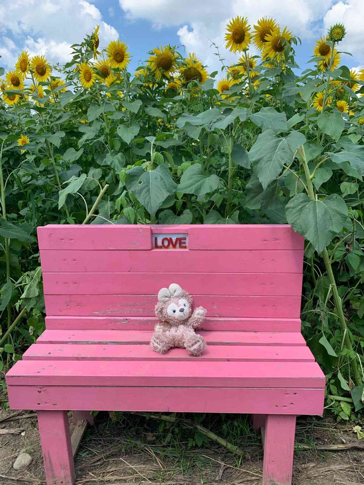 私、ダッフィーとひまわり畑で待ち合わせしてるの🌻🌻女の子を待たすなんてね🌻ソフトクリーム🍦持って登場かな🌻🍦
