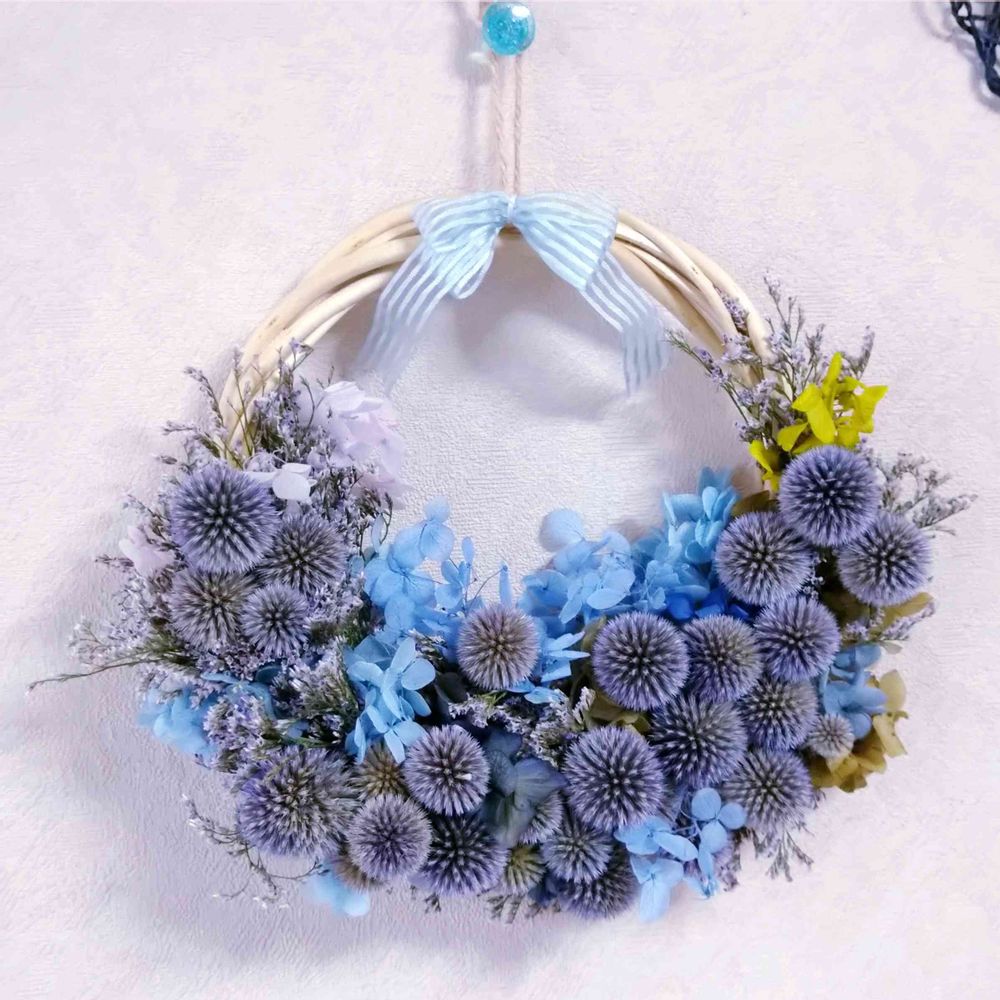 壁/天井,ルリタマアザミ,ドライフラワーリースの投稿画像