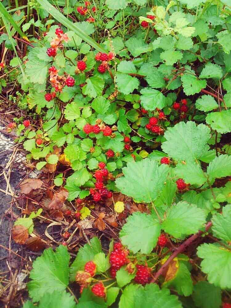 ジャムが作れそうなくらいたくさん野イチゴがあるんですが…この辺は犬のオシッコが心配で~😭