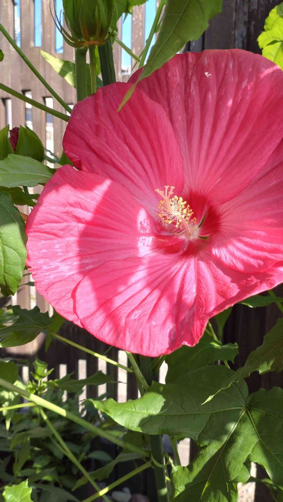 測ったら花の直径22㎝あった。背丈は今180㎝ぐらいかな?いい感じで庭の西日よけとなっている。