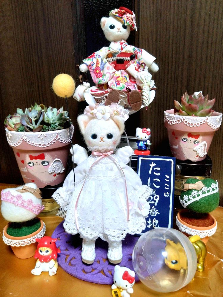 豆猫さんの羽根付きニャンドールを先月のイベントでお迎え出来たのでお着物👘ニャンドールと一緒に仲良くルンルン🎵🎶