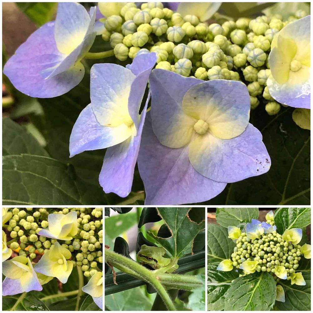 花ママさんのニホンアマガエル,アジサイ(ブルースカイ),カエル倶楽部♡の投稿画像